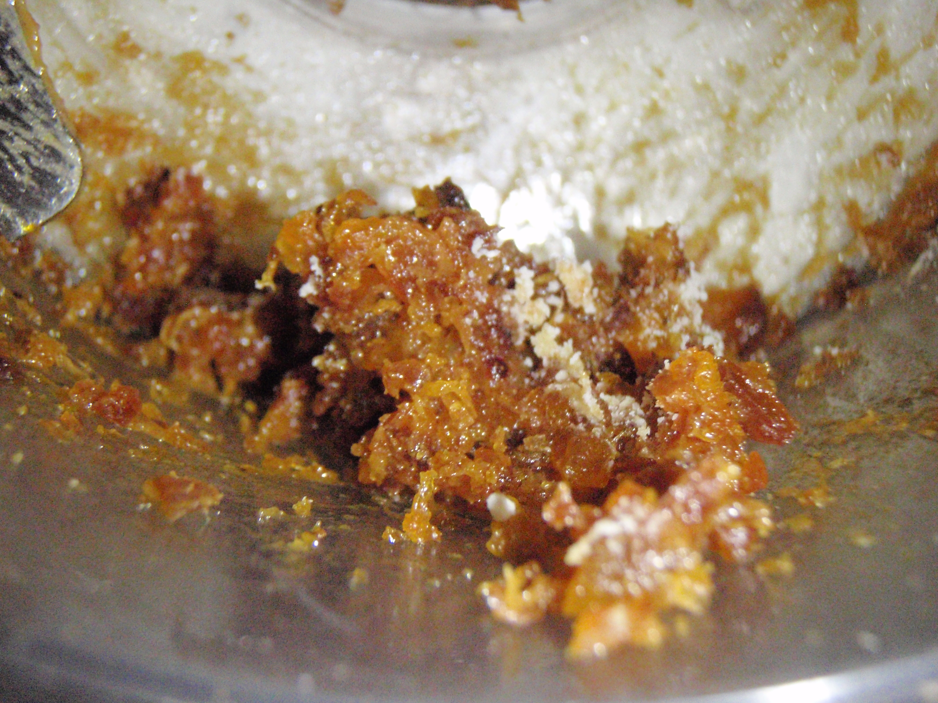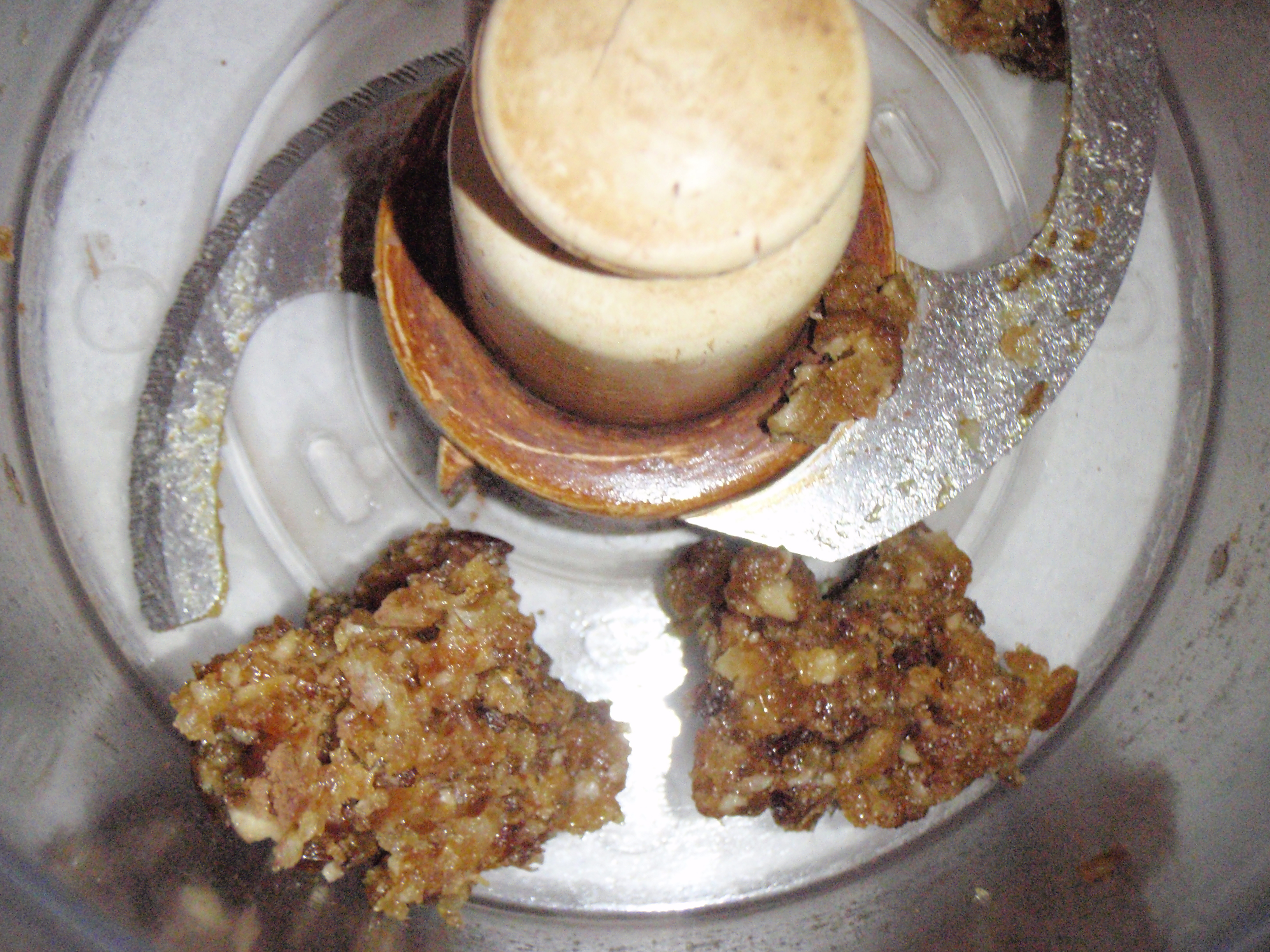 Du brauchst nur einen Zerkleinerer…entweder ein Messer, Mörser oder Küchenmaschine. Einfach die Datteln darin zerkleinern bis ein klebriger Teig daraus wird. So…